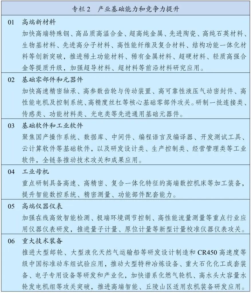 規(guī)劃綱要首次在"產(chǎn)業(yè)基礎(chǔ)能力和競(jìng)爭(zhēng)力提升"專欄中,將"基礎(chǔ)軟件和工業(yè)軟件"與高端新材料、基礎(chǔ)零部件并列為基礎(chǔ)再造工程的核心方向。文件明確聚焦國(guó)產(chǎn)操作系統(tǒng)、數(shù)據(jù)庫(kù)、中間件、編程語(yǔ)言及編譯器等基礎(chǔ)軟件全鏈條技術(shù)攻關(guān),這相當(dāng)于為信創(chuàng)產(chǎn)業(yè)劃定了清晰的作戰(zhàn)地圖。