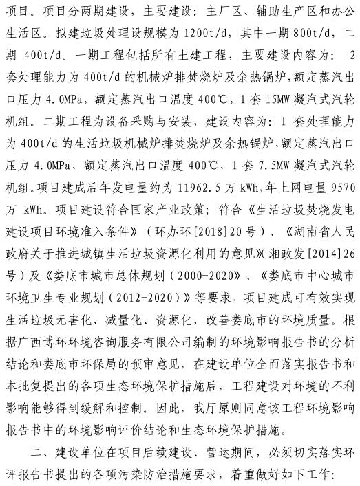 日前,湖南生態(tài)環(huán)境廳批復了婁底市城市生活垃圾焚燒發(fā)電項目環(huán)境影響報告書。