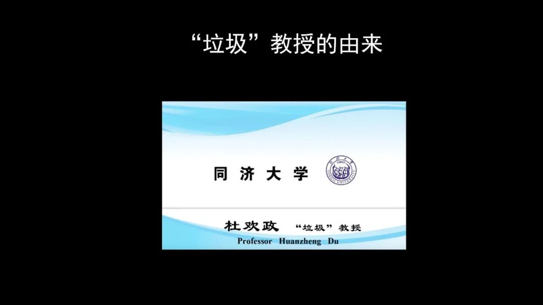 我來自同濟大學,大家看我的名片上印的是:“垃圾”教授。大家覺得奇怪了,怎么教授還有垃圾教授、優(yōu)秀教授之分嗎?這里面實際上是有個故事的。