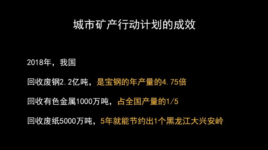 在今年新冠疫情以后,我們強調要雙循環(huán),既要國內循環(huán),也要國際循環(huán),但是在資源這一塊,國外有卡我們脖子的37項技術,也有石油鋼鐵這些資源對我們的卡脖子,如果我們能夠實現(xiàn)自己的內循環(huán),把我們的城市礦產變成資源,不就在資源上不受制于人了。
