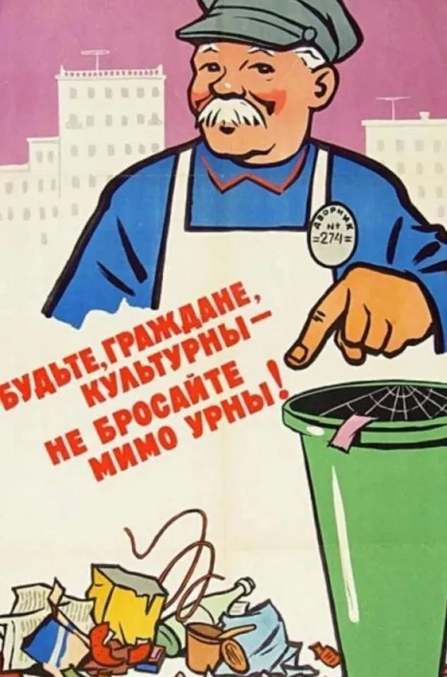 在蘇聯(lián),裝滿空瓶子和罐子的袋子,被體面的人送到玻璃容器的收集點(diǎn)。這是有益于社會(huì)的,完全不被認(rèn)為是可恥的。蘇聯(lián)有一個(gè)廢棄物交換系統(tǒng)用于回收利用廢棄物,在交出了廢棄物后,你可以得到紙張,肥皂,洗衣粉,罐頭食品和稀缺的外國(guó)文學(xué)書籍。
