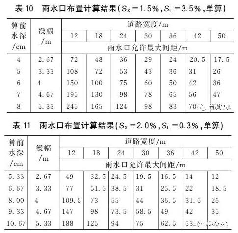 (3)當(dāng)?shù)缆房v坡和漫幅不變時,雨水口允許最大間距隨道路橫坡增大而增大。