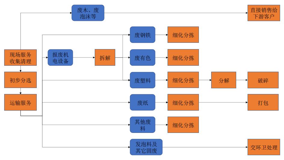 中再環(huán)服主要從事產(chǎn)業(yè)園區(qū)固體廢棄物一體化處置業(yè)務(wù),廢棄物屬于普通廢物,主要包括廢舊有色金屬、廢鋼鐵、廢塑料、廢紙、廢木等,不包括廢棄電器電子產(chǎn)品拆解。